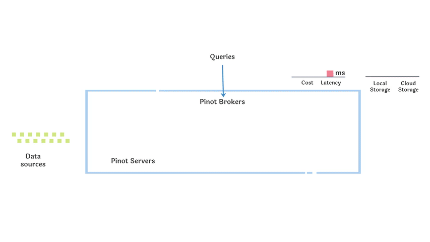 A Pinot cluster consists of several data nodes known as ‘Pinot Server’ that can ingest data from various sources (streaming, batch, SQL) and store it locally as ‘Pinot Segments’ on attached storage volumes. A ‘Pinot Broker’ then performs distributed scatter-gather as part of the query processing. Each Pinot Server will locally execute the query, which is very fast since the data is locally accessible. Read more about different Pinot components on this wiki page.