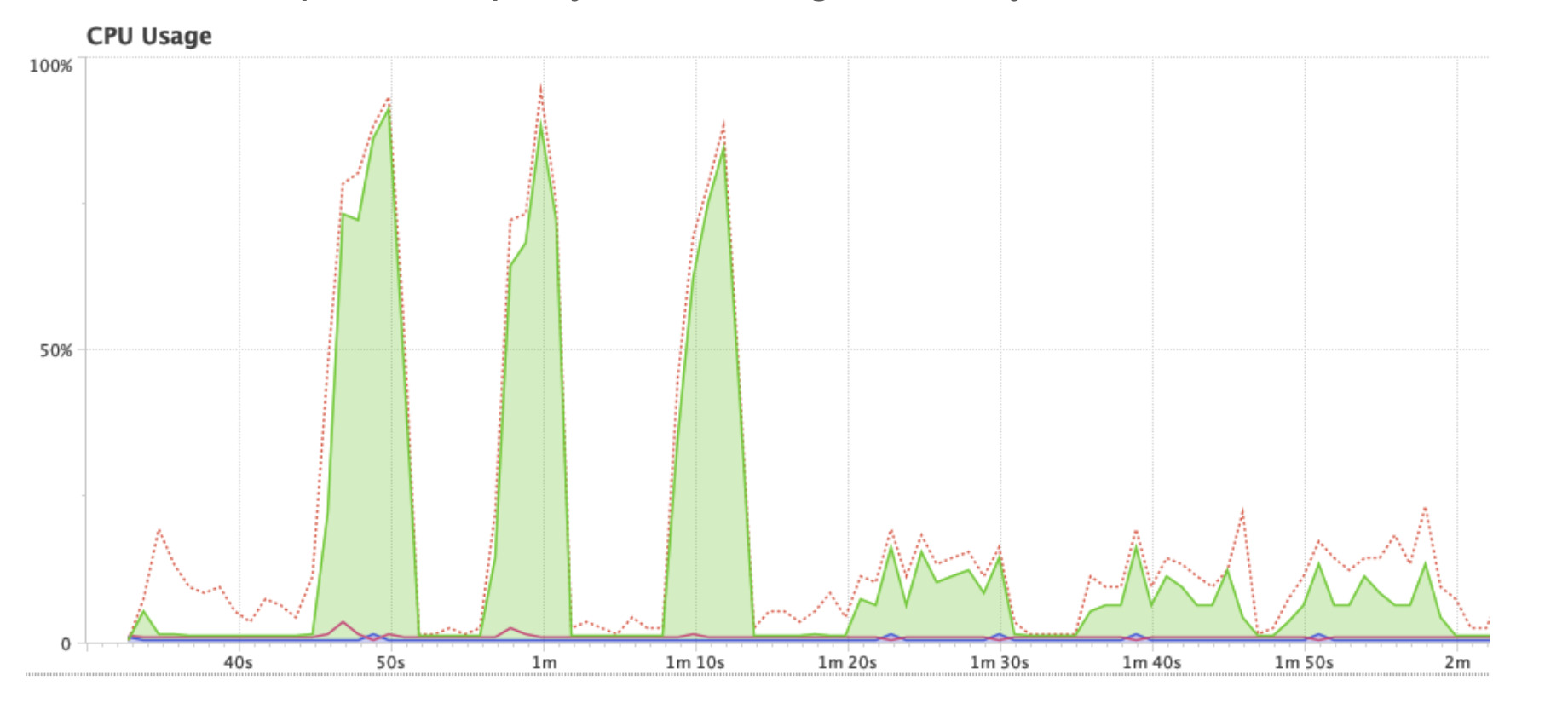 Allow configuring the maximum number of threads used for a query on the server to prevent one expensive query from exhausting all the system resources. In the graph, the first 3 queries do not have thread limit, and the following 3 queries have thread limit. We can see the first 3 queries used almost 100% of the CPU, but once we enable this quota, the CPU usage drops to about 20%.